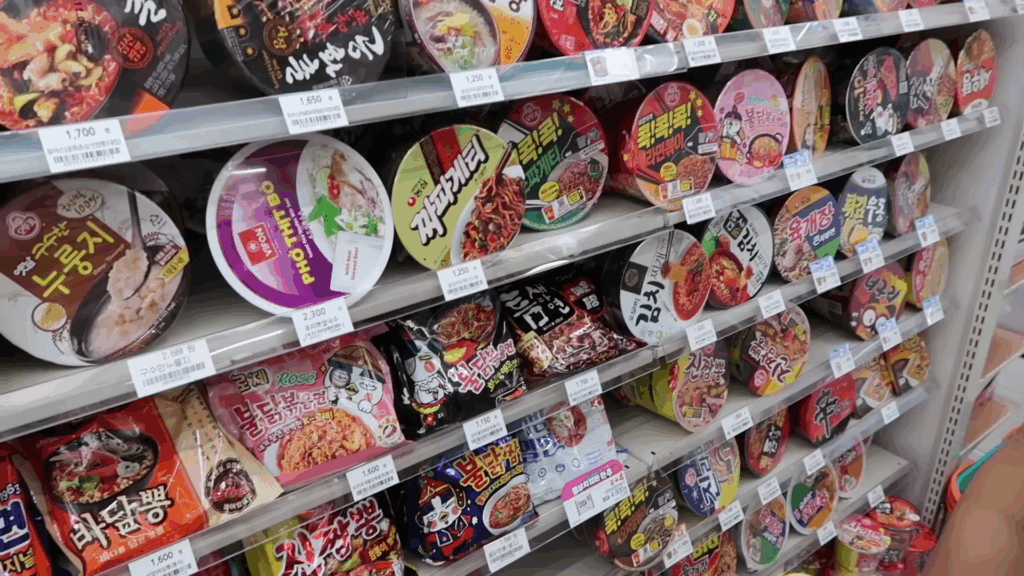 Convenience stores like GS25, CU, 7-Eleven, and Emart24 are everywhere. They’re clean, open 24/7, and even let you cook instant noodles on the spot!